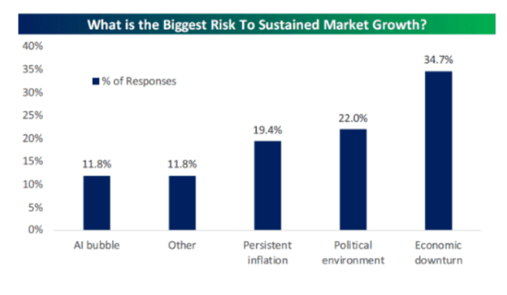 進入2026年,Bespoke Investment Group向客戶提問:他們認爲持續的市場增長面臨的最大風險是什麽。